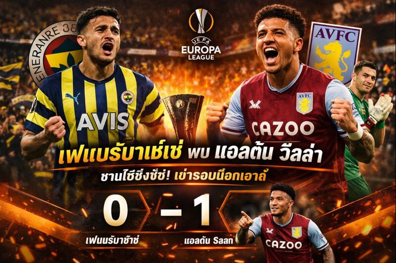 ศึกยูฟ่า ยูโรปา ลีก นัดรองสุดท้ายของรอบลีก เฟส เมื่อวันพฤหัสบดีที่ผ่านมา เป็นการเจอกันระหว่าง เฟแนร์บาห์เช พบ แอสตันวิลลา ที่สนาม ชูครู ซาราโชลู สเตเดี้ยม เกมนี้เจดอน ซานโช่ กลายเป็นฮีโร่หลังซัดประตูโทนในครึ่งแรกให้ทีมเยือน "สิงห์ผงาด" บุกเฉือนชนะ 1-0 และการันตีเข้ารอบน็อกเอาต์เรียบร้อย