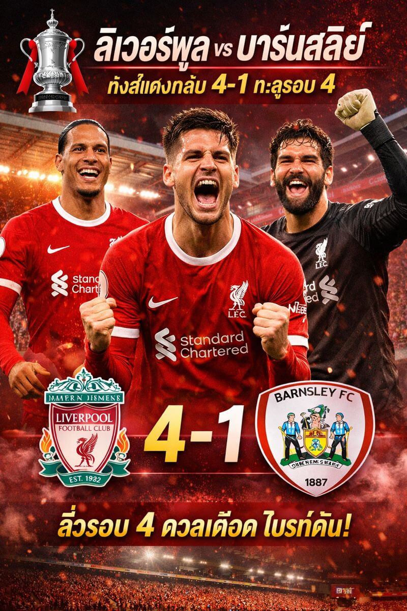 ลิเวอร์พูล vs บาร์นสลีย์: ลิเวอร์พูลโชว์ฟอร์มดุ ทะลุรอบ 4 เอฟเอ คัพ