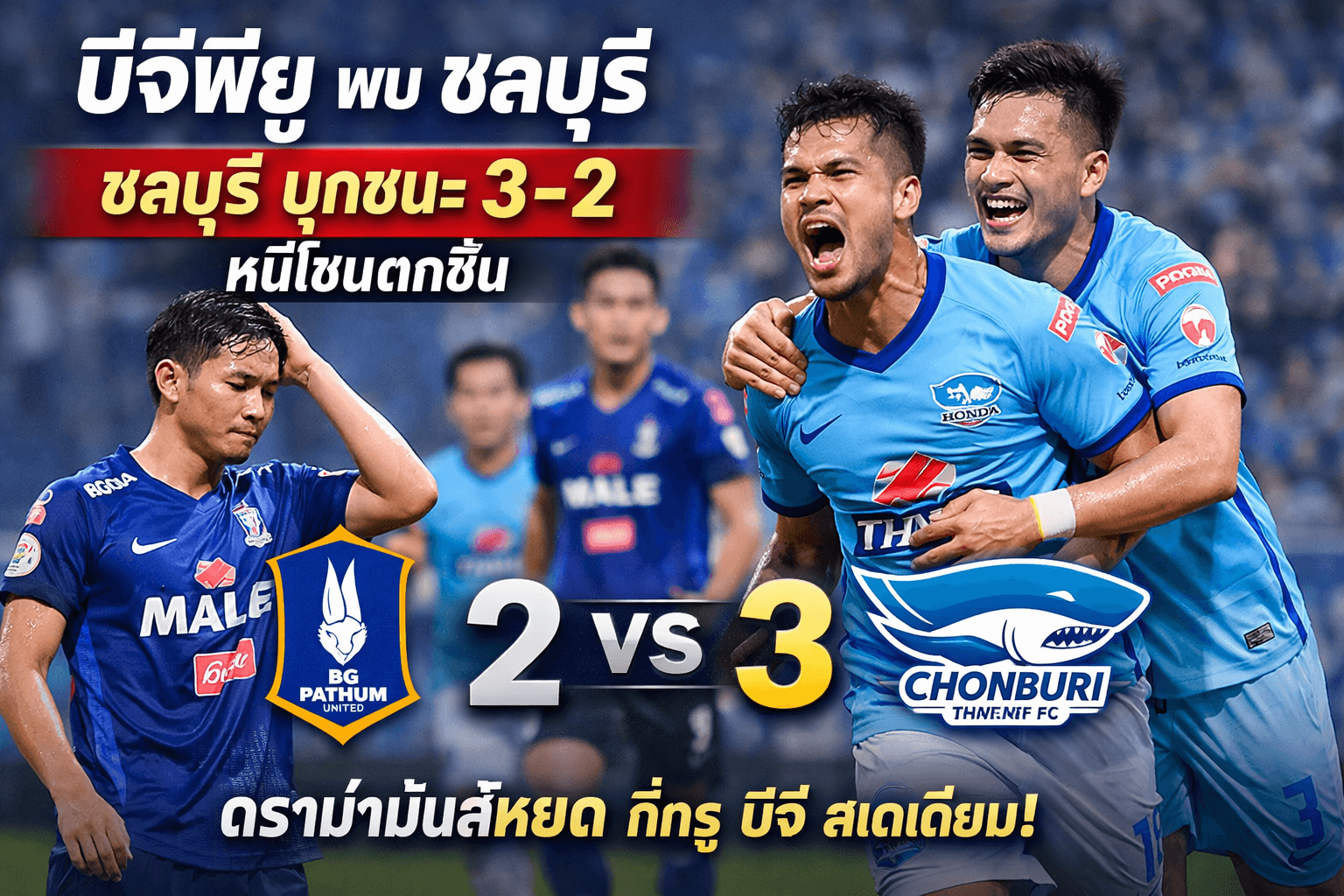 บีจีพียู พบ ชลบุรี: ชลบุรี บุกชนะ 3-2 หนีโซนตกชั้น