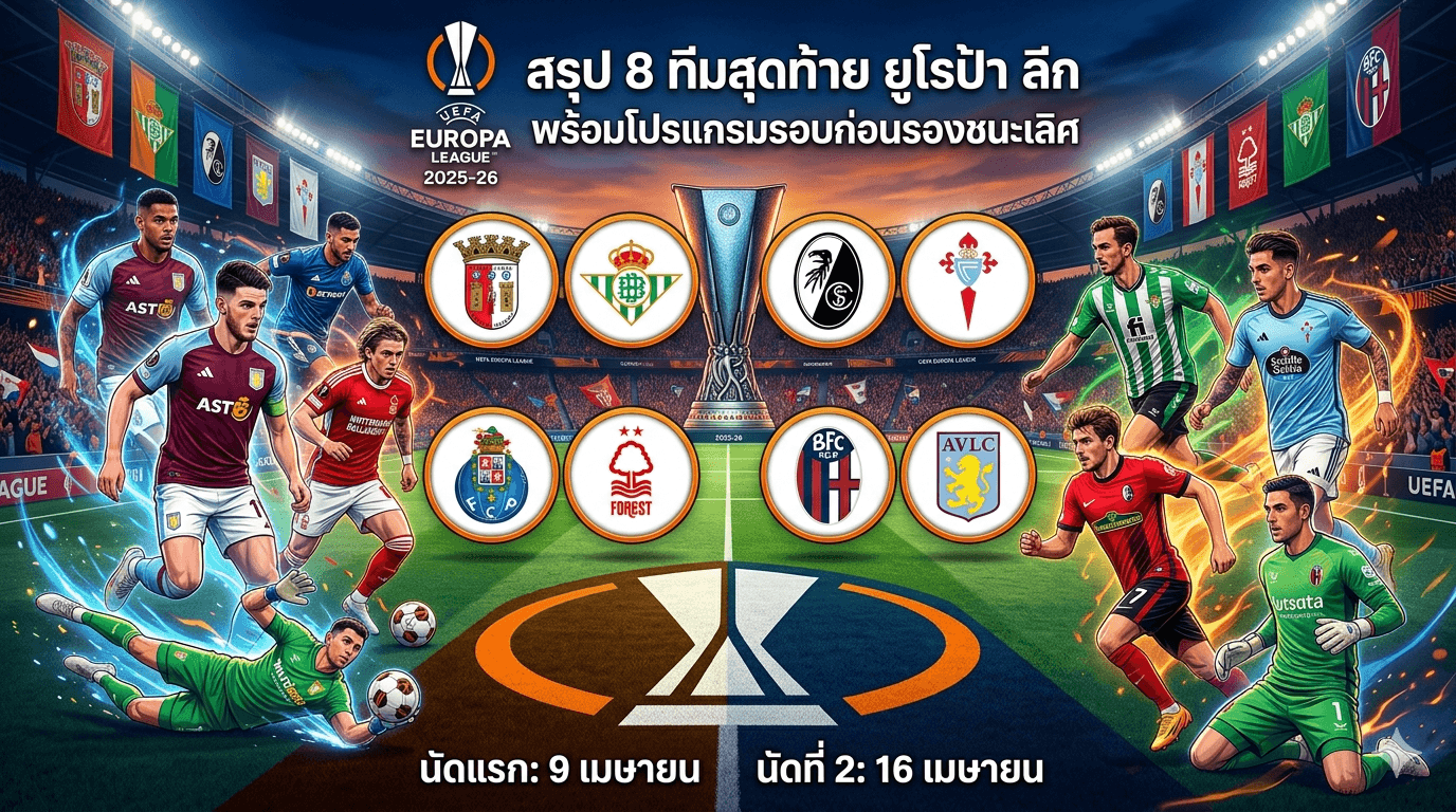 สรุป 8 ทีมสุดท้าย ยูโรป้า ลีก 2025-26 พร้อมโปรแกรมรอบก่อนรองชนะเลิศ