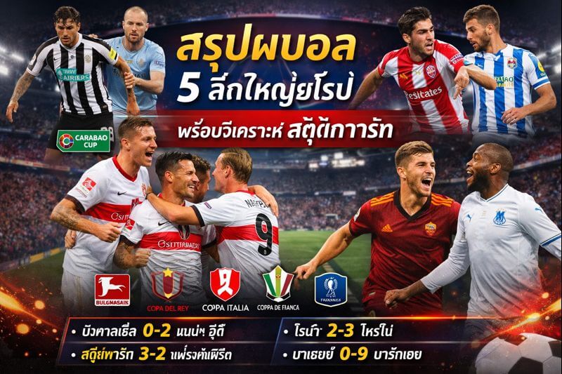 เมื่อคืนวันที่ 13 มกราคม 2569 ฟุตบอล 5 ลีกใหญ่ยุโรปมีแมตช์สำคัญหลายคู่ที่แฟนบอลติดตามอย่างใกล้ชิด โดยเฉพาะ สตุ๊ตการ์ท ที่โชว์ฟอร์มดุในบุนเดสลีกา เยอรมนี ชนะ ไอน์ทรัคท์ แฟรงเฟิร์ต 3-2 ทำให้แฟนบอลประทับใจกับการกลับมาของทีมอย่างแท้จริง