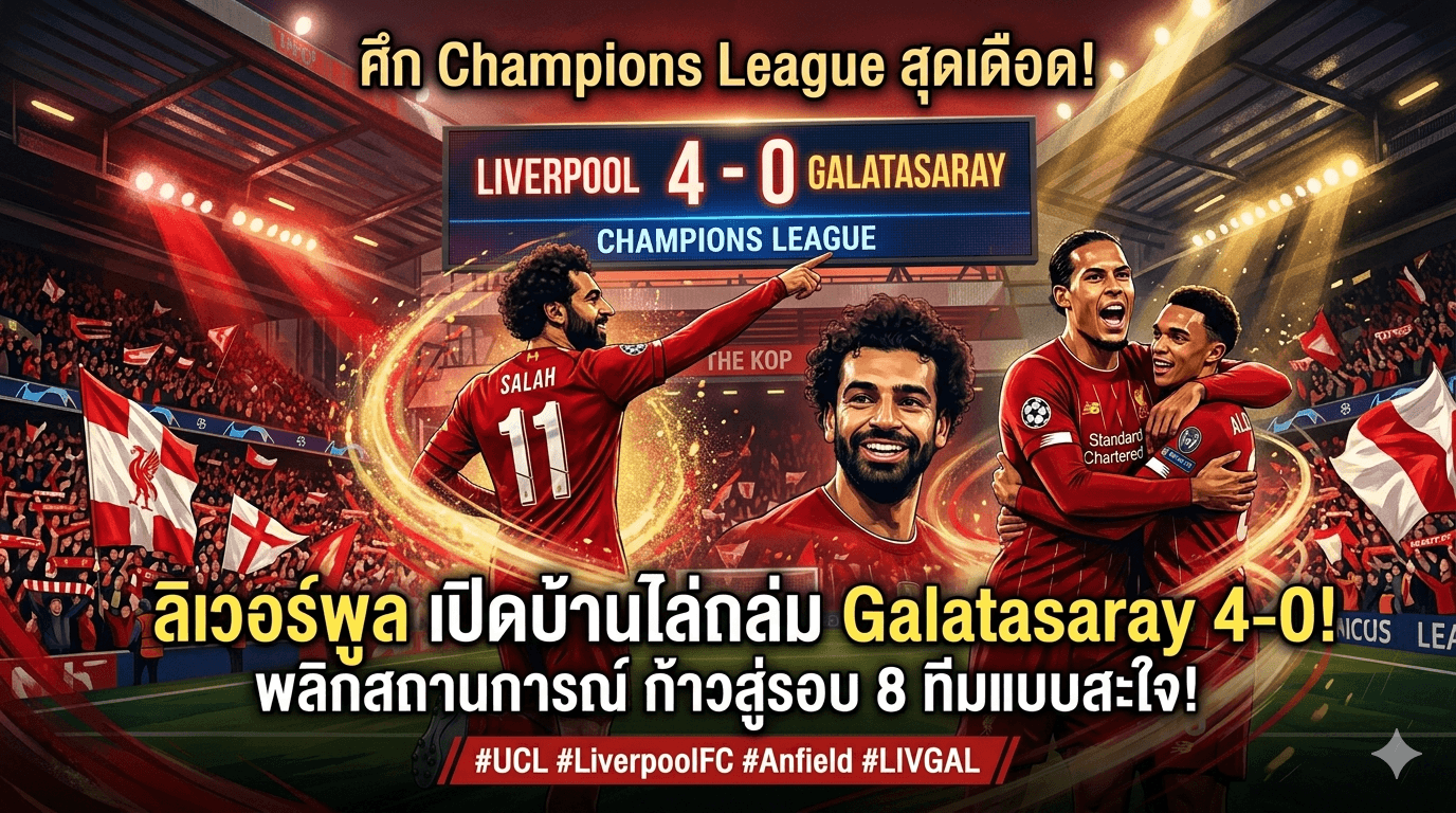 คืนวันพุธที่ผ่านมา แสงแดดอ่อนๆ ลาลงบนเมืองลิเวอร์พูล ก่อนที่ค่ำคืนจะเต็มไปด้วยความร้อนแรงของเกม Liverpool vs Galatasaray Champions League รอบ 8 ทีมสุดท้าย การแสดงของลิเวอร์พูลเมื่อคืนนี้เรียกได้ว่าเป็นหนึ่งในฟอร์มดีที่สุดของฤดูกาล