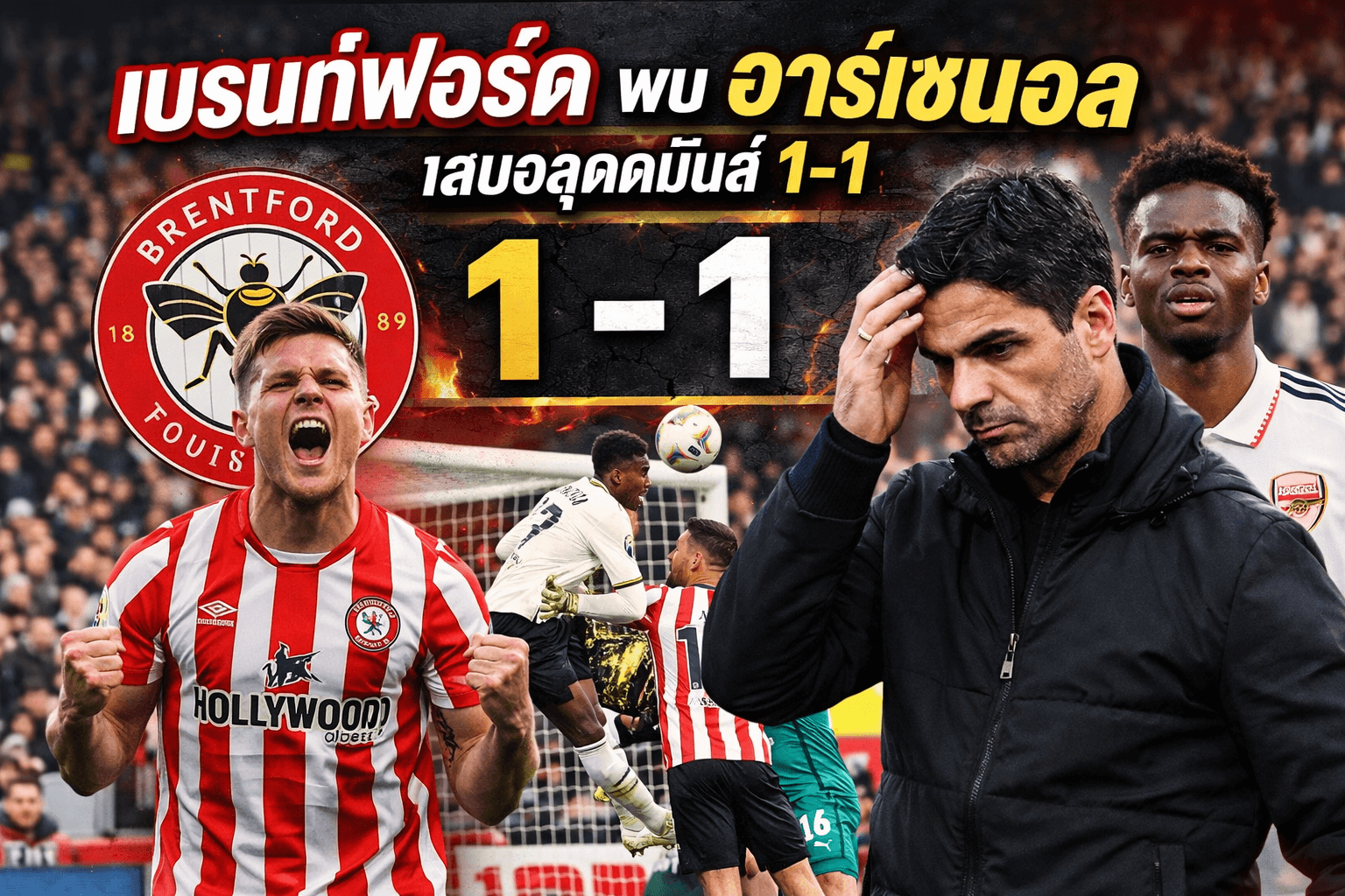 เกม เบรนท์ฟอร์ด พบ อาร์เซนอล จบลงด้วยผลเสมอ 1-1 ทำเอาแฟนบอลปืนใหญ่ต้องเสียดายกันยกใหญ่ หลังจากที่ โนนี่ มาดูเอ็นเก้ โขกประตูขึ้นนำให้ทีม แต่ต่อมาถูก คีน ลูอิส-พ็อตเตอร์ โหม่งตีเสมอ ทำให้คะแนนนำจ่าฝูงพรีเมียร์ลีกเหนือ แมนเชสเตอร์ ซิตี้ ลดเหลือเพียง 4 แต้มเท่านั้น